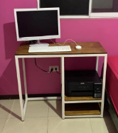 Mesa de trabajo simple, posiblemente con un diseño minimalista. Ideal para espacios de estudio o pequeñas oficinas.