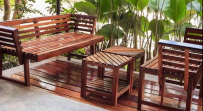Conjunto de muebles de jardín, posiblemente con sofás, sillones y mesa baja. Diseñado para proporcionar comodidad y estilo en exteriores.