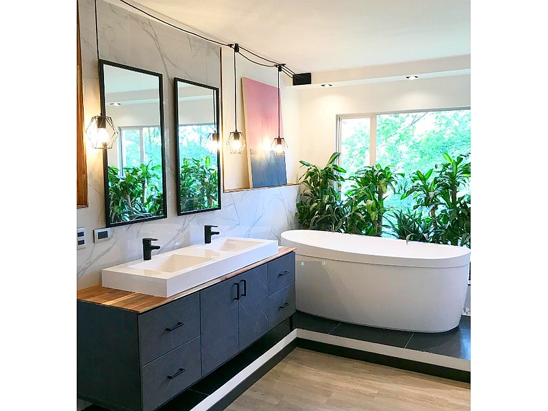 En este proyecto de 4 habitaciones convertimos una de ellas en un baño principal amplio e impactante. Fue lo que más enamoró a su comprador así que el riesgo valió la pena, lo que nos confirmó que aveces es bueno arriesgar un poco para cumplir tus sueños.