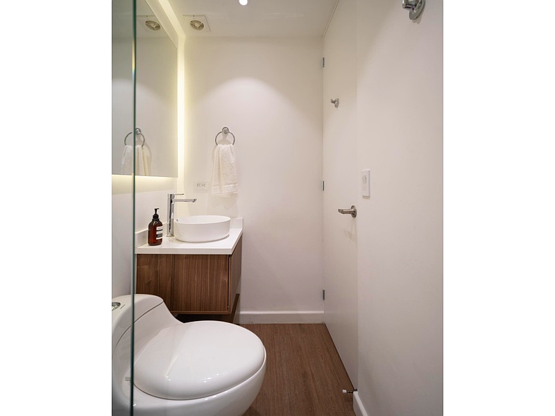 Los baños de uno nuestros últimos proyectos. El porcelanato tipo mármol está en tendencia. ¿Lo usarías si renovaras tu hogar?