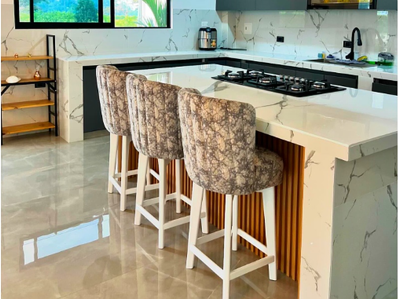 Con un asiento cómodo y ergonómico, disponible en una variedad de materiales como madera, metal o tapizado, estos taburetes ofrecen una altura ajustable y un reposapiés para mayor confort.