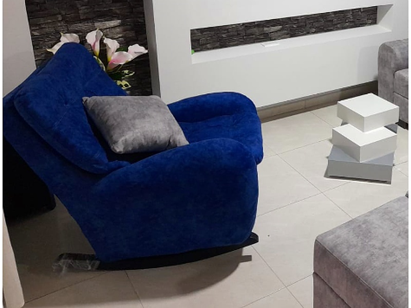 Relájate en estilo con la silla mecedora en tono azul. Su diseño ergonómico y tapicería suave ofrecen el máximo confort, mientras que su estructura resistente proporciona estabilidad y durabilidad.