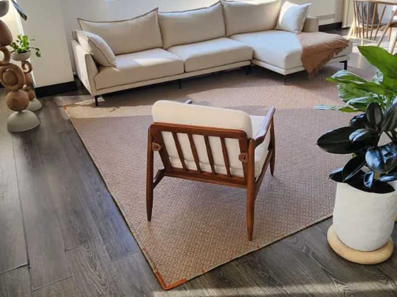Tapete en Fibra Natural Color Gris Claro, con Rombos Medianos
