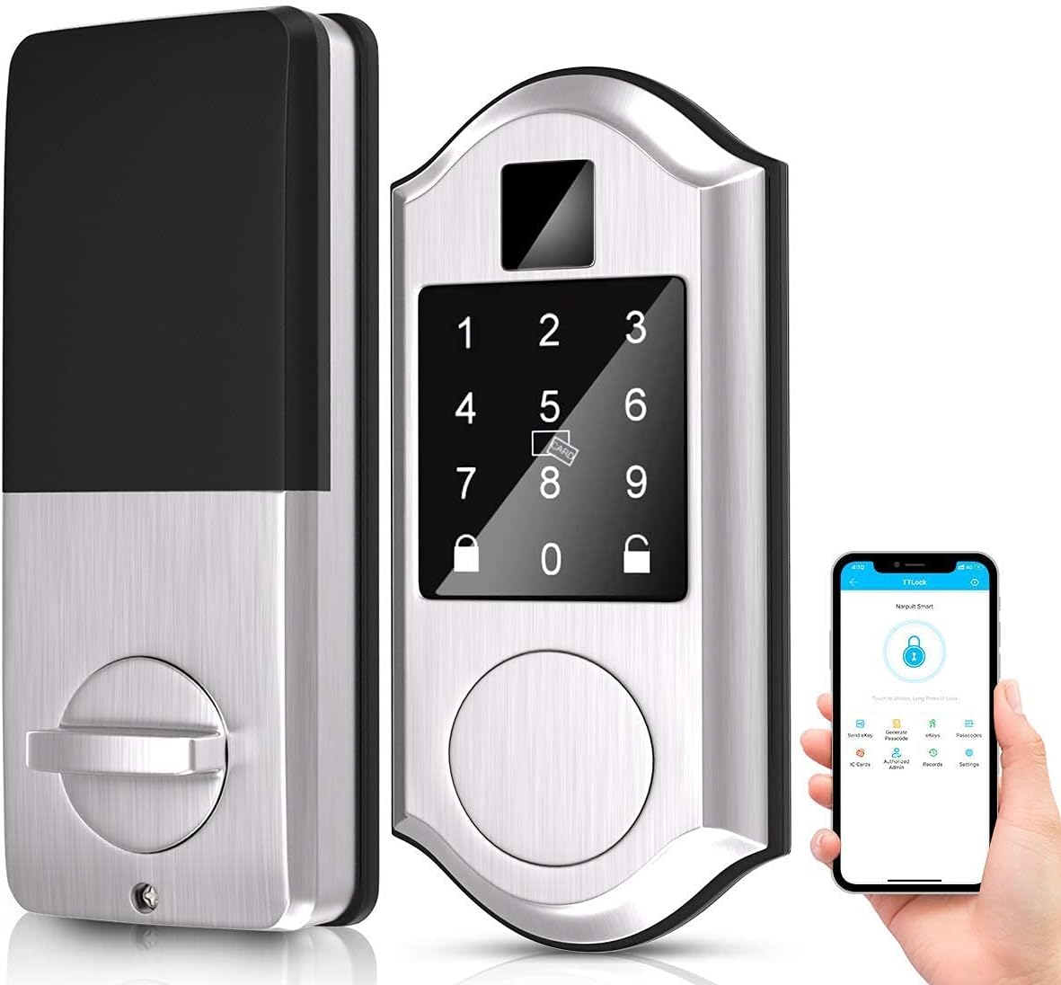 Bloqueo inteligente de entrada sin llave: bloqueo electrónico más grande – bloqueo y desbloqueo con smartphone, teclado y llave mecánica, módulo Bluetooth integrado, saca tu teléfono y un paso para desbloquear tu puerta. También puede acceder con códigos digitales preestablecidos y dos teclas para copia de seguridad.
