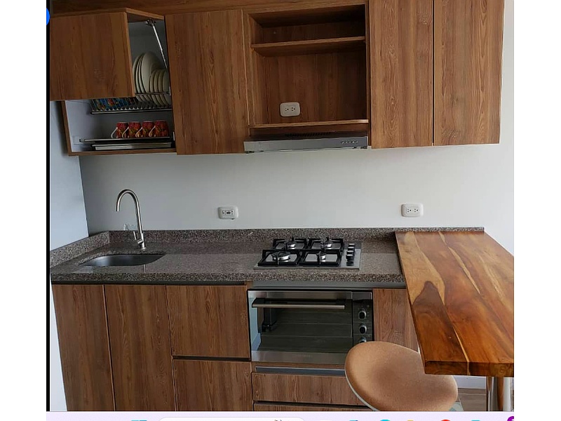 Moderno y funcional: La cocina presenta un diseño contemporáneo, con líneas rectas y una distribución sencilla que prioriza la funcionalidad.
