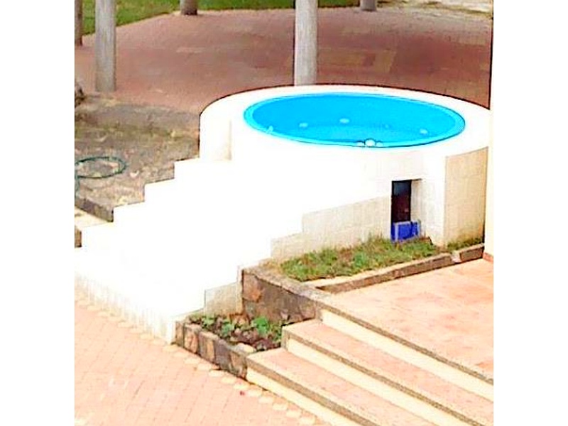 piscina pequeña y moderna, perfecta para relajarse en un espacio al aire libre. Su diseño sencillo y elegante la hace adaptable a diferentes estilos de decoración.