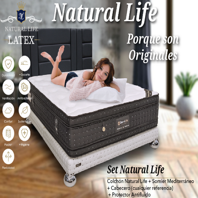 Colchón Nature Life, con una construcción que combina materiales naturales y tecnología avanzada para ofrecer un soporte ergonómico y un descanso saludable. Ideal para quienes buscan un equilibrio entre confort y beneficios para la salud, con una superficie que favorece una buena postura y una ventilación adecuada.