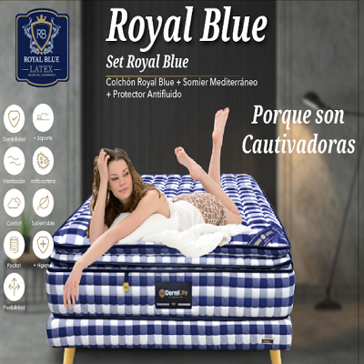 Colchón Royal Blue, con un diseño lujoso que ofrece una combinación de confort y soporte. Su estructura avanzada proporciona un descanso óptimo, mientras que los detalles en color azul añaden un toque de elegancia a cualquier dormitorio.