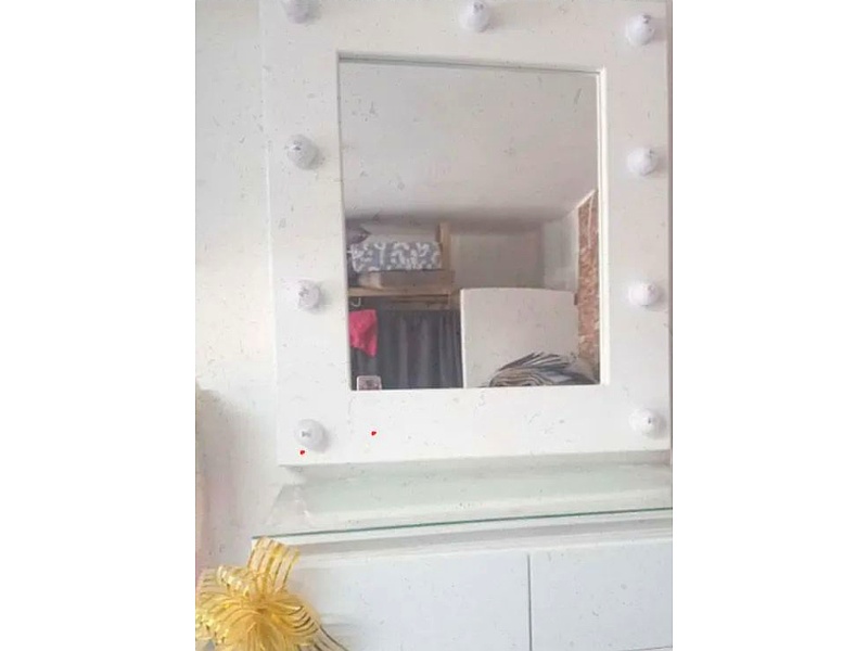 Tocador flotante tipo holliwood de 2 gabetas, color blanco, bombillos tipo pinpon, luz blanca Garantía en la madera de 2 años