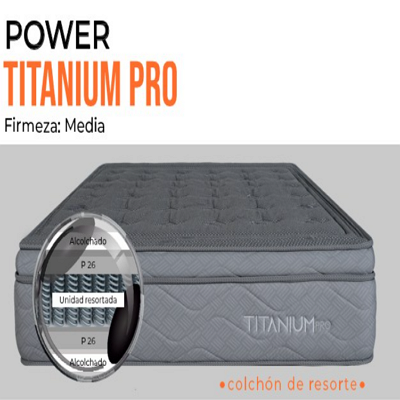 El colchón Power Titanium destaca por su tecnología avanzada y materiales de alta calidad, incluyendo refuerzos de titanio para un soporte óptimo y durabilidad. Diseñado para ofrecer un descanso firme y adaptado a las necesidades del cuerpo, proporciona comodidad y resistencia superiores.