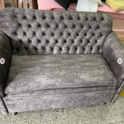 Sofá clásico gris sintético, con un diseño atemporal y sofisticado que complementa cualquier decoración. Su tapizado en material sintético ofrece una apariencia elegante y duradera, además de ser fácil de mantener.