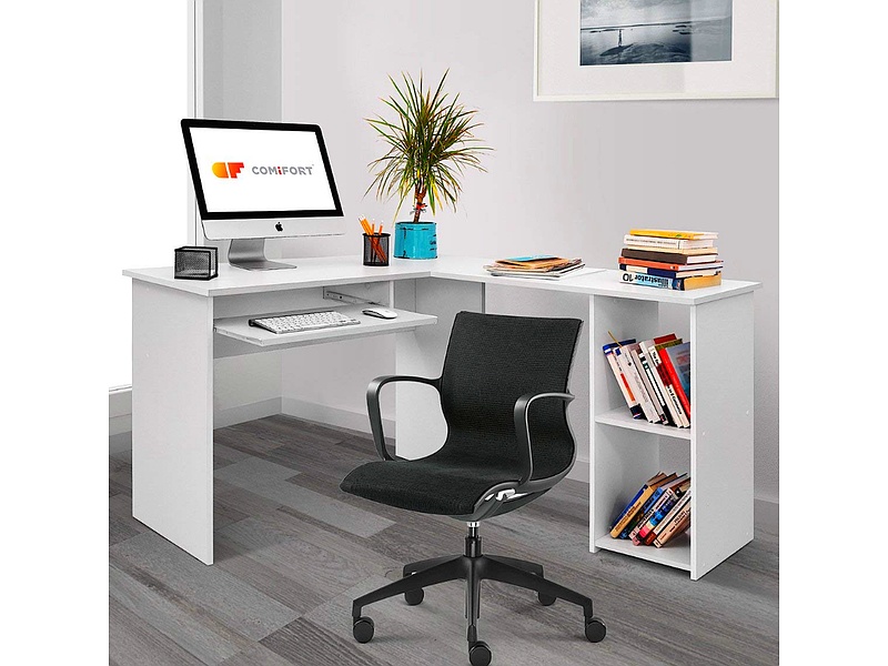 Un escritorio ideal para oficinas en casa, con un diseño compacto y moderno. Incluye cajones y estantes para mantener todo organizado, perfecto para trabajar desde casa.