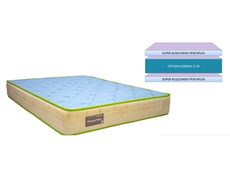 Colchón elaborado con un núcleo central de espuma normal D-20, tapizado en tela satinada de colores pastel, y super acolchado en espuma tipo penta para aumentar la sensación de confort, soporte de carga hasta 65 kg p/p.
