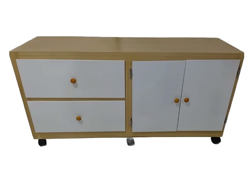 La cómoda es un mueble versátil para el almacenamiento en el hogar. Cuenta con dos cajones para guardar artículos pequeños y una puerta que oculta un compartimento adicional, ideal para ropa u otros objetos. Su diseño funcional y compacto ayuda a mantener el espacio ordenado y organizado, mientras que su estilo puede adaptarse a diferentes decoraciones interiores.
