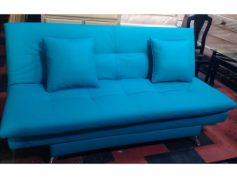 Sofá cama en color turquesa, cómodo y funcional.