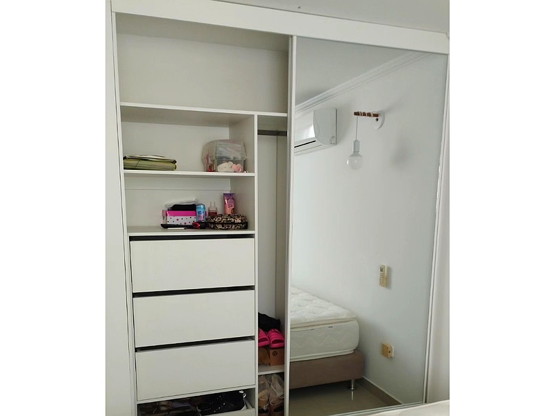 Closet empotrado de madera, diseñado para optimizar el uso del espacio y brindar una solución de almacenamiento elegante.