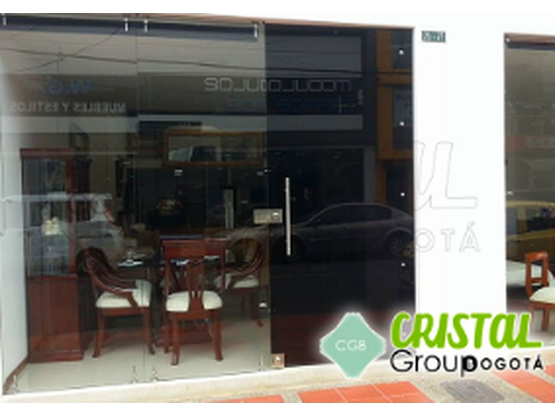 Puertas para fachadas en vidrio templado, con accesorios en acero inoxidable, decoradas con películas adhesivas.