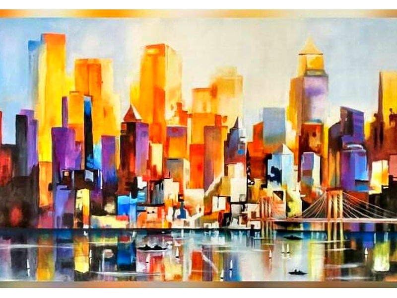 Muestra una ciudad en un diseño abstracto, con líneas y colores que representan la vida urbana y su energía dinámica. Perfecto para añadir un toque moderno y vibrante a tu decoración.