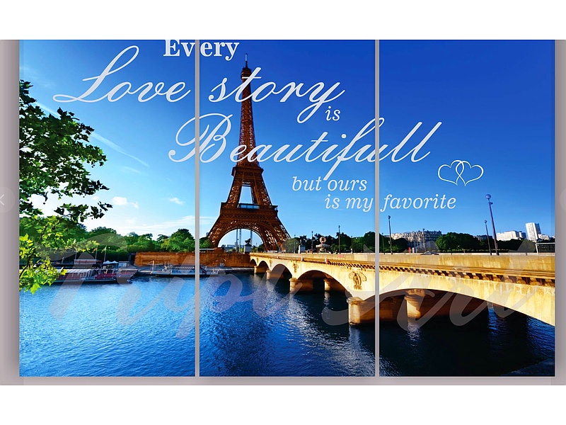 Muestra diferentes aspectos de la ciudad de París en un formato modular, combinando elementos icónicos como la Torre Eiffel y los paisajes urbanos. Ideal para añadir un toque romántico y cosmopolita a cualquier espacio.