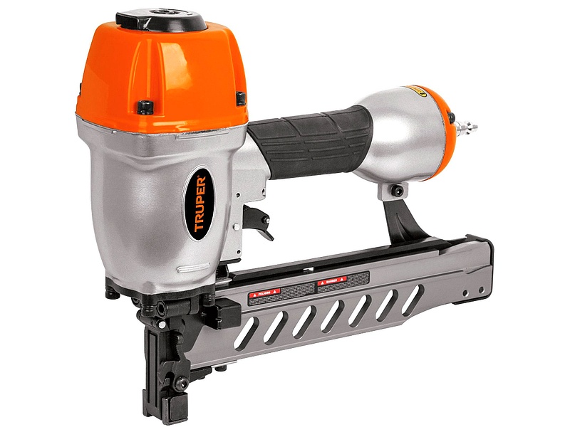 Herramienta eléctrica que inserta grapas metálicas en materiales como madera, tela o papel, utilizada en tareas de tapicería y carpintería.