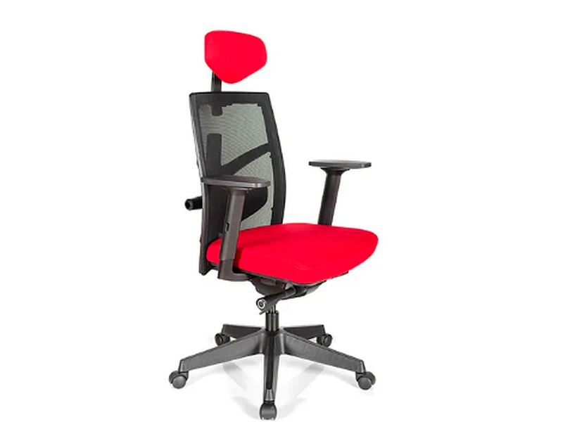 Espaldar alto graduable en altura dimensiones: Alto 60 a 66 , Ancho 40 a 45 cms, Angulo 90 y 110 grados. tapizado en malla poliester transpirable que permite una mejor ventilación y proporciona un confort térmico. Espaldar con apoyo lumbar graduable en profundidad. Cabecero graduable en altura.