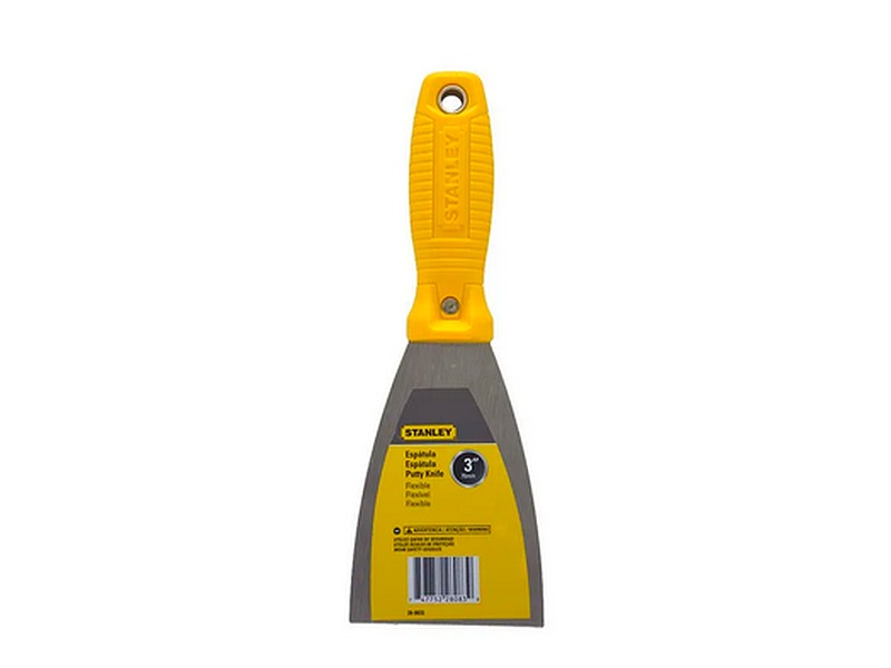 La espátula de acero flexible de 3" STANLEY es una herramienta esencial para trabajos de aplicación y acabado de materiales. Su hoja de acero flexible permite una aplicación uniforme y una maniobrabilidad precisa en superficies de trabajo, ideal para tareas como alisar masillas, aplicarlas o eliminar restos de materiales.