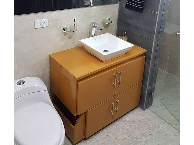 Mueble de baño moderno y funcional, diseñado para maximizar el espacio y mantener el orden.