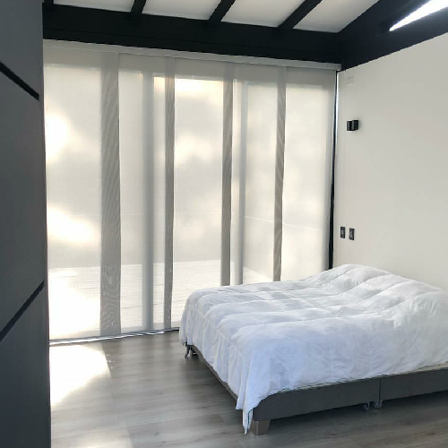 Cortina tipo panel japones de color blanco con nivel de transparencia bajo