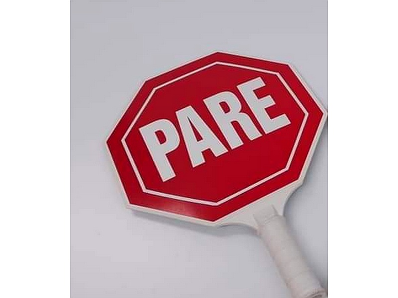 La paleta de señalización "Pare" es esencial para controlar el tráfico en zonas de construcción y eventos. Fabricada en plástico resistente o aluminio ligero, tiene un diseño grande con letras rojas reflectantes para alta visibilidad. El mango ergonómico y antideslizante facilita su uso por los operarios.