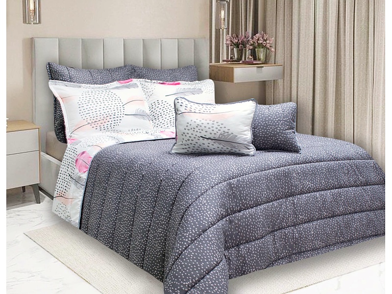 Esta colcha presenta un elegante diseño de plumas que transforma tu espacio en un oasis de confort y estilo. Confeccionada en Colombia, combina un acabado refinado con una textura suave y cálida, perfecta para renovar tu dormitorio con un toque sofisticado.