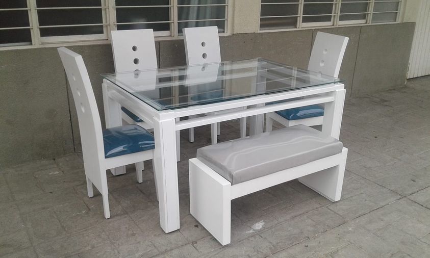 Comedor TH con base Dúo banca 2 puestos vidrio de 10 mm con lineas opalizadas de 1,50X1,0 M.