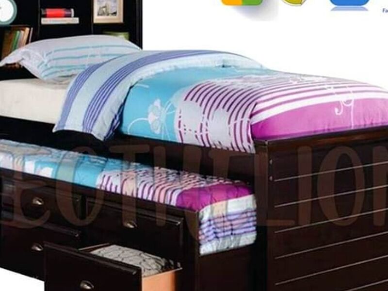Cama tipo Duplex especial. El aprovechamiento pleno de los espacios nos permite diseñar elementos como este. El cabecero del dormitorio superior tiene un sistema de entrepaños y su cama mide 1m * 1.9m.