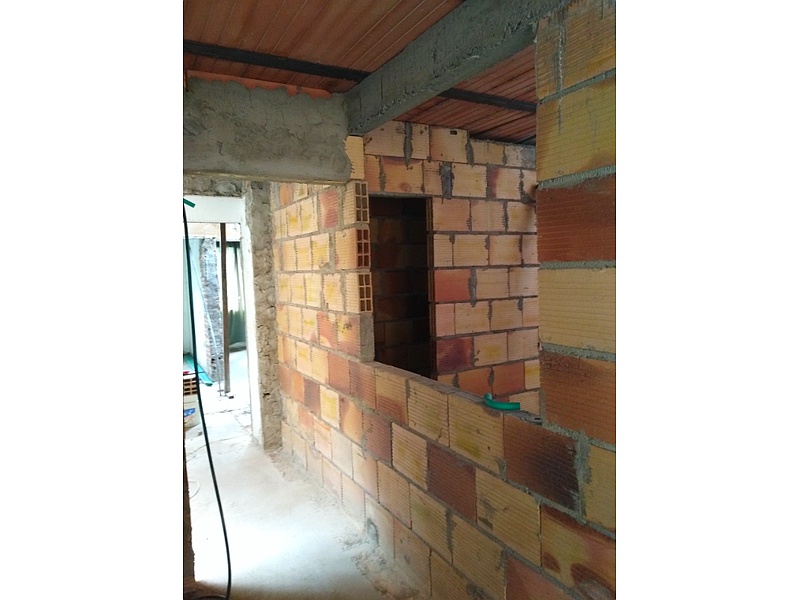 Construcción de casa con ladrillo.