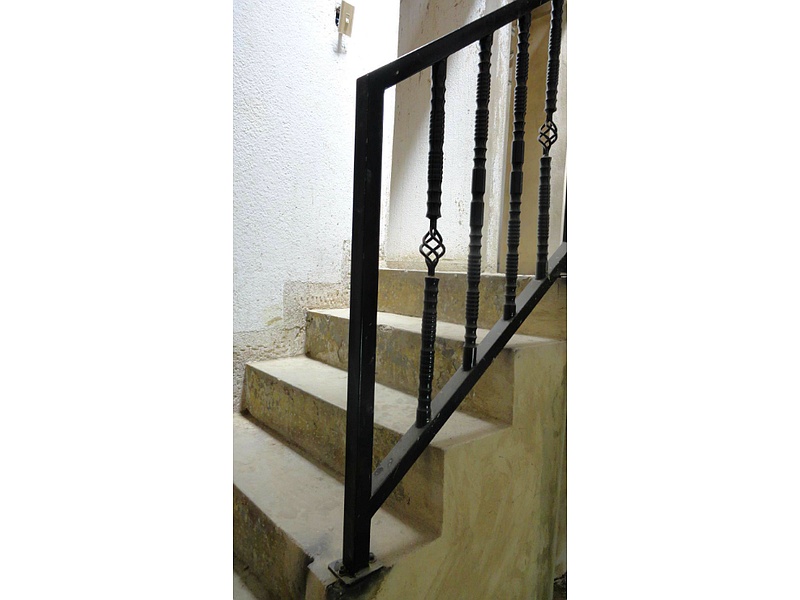 Construcción de escalera con barandilla de hierro.