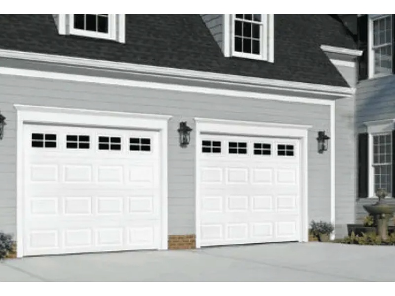Puerta de garaje marca ACCESSMATIC doble lámina seccionada a cuadros color blanco, herrajes completos 3.05m x 2,14m. CAL 22. NO INCLUYE MOTOR.