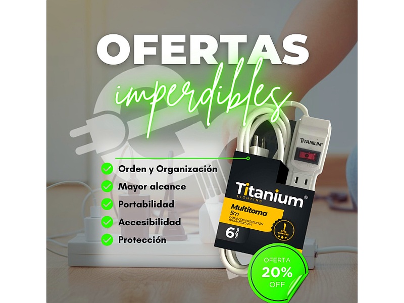 Multitoma eléctrica blanca, ideal para proporcionar múltiples puntos de conexión en un solo lugar. Su diseño compacto y elegante se adapta a cualquier ambiente, asegurando seguridad y comodidad en el uso diario de dispositivos electrónicos.