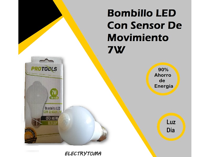 Bombillo LED con sensor de movimiento, activa la luz automáticamente al detectar presencia. Ideal para pasillos y áreas de acceso, proporciona seguridad y eficiencia energética.