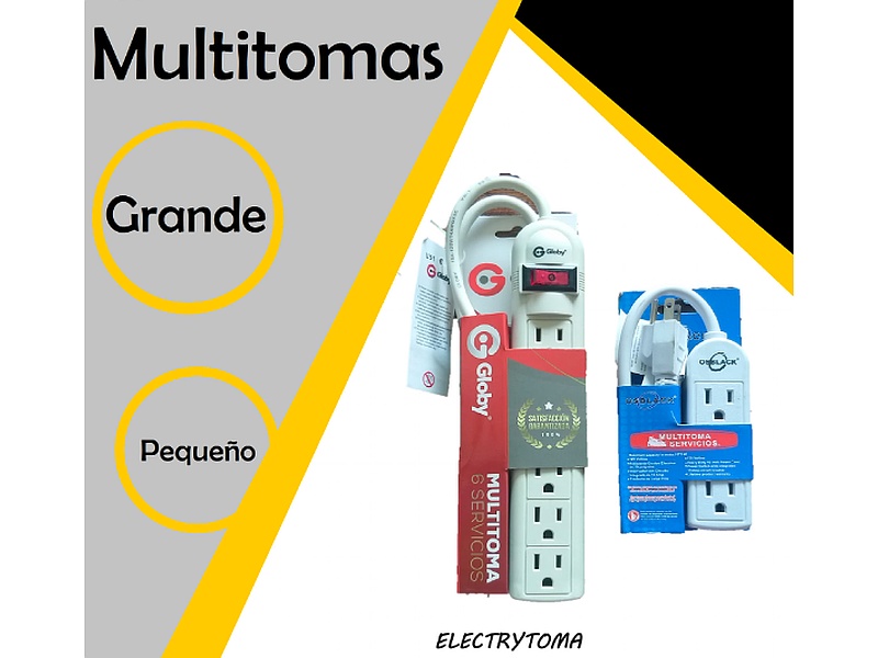 Multitoma eléctrica blanca, diseñada para conectar múltiples dispositivos en un solo punto. Incluye protección contra sobrecargas y un diseño compacto.
