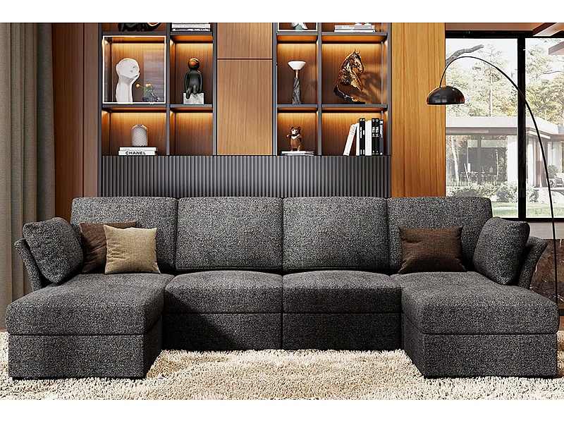Un elegante sofá modular que se adapta a cualquier espacio, con tapicería de alta calidad y cojines rellenos de espuma de memoria. Ideal para grandes reuniones o para relajarse en familia.