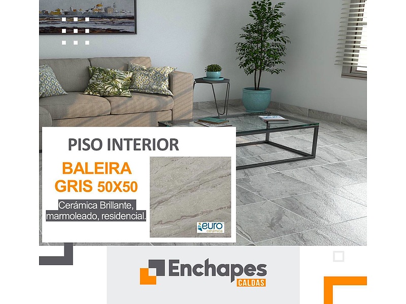 El Piso Interior Baleira Gris de 50x50 cm ofrece un diseño contemporáneo y versátil para cualquier espacio interior. Su color gris neutro y tamaño conveniente lo hacen ideal para proyectos residenciales y comerciales que buscan combinar estilo y funcionalidad con facilidad de instalación.