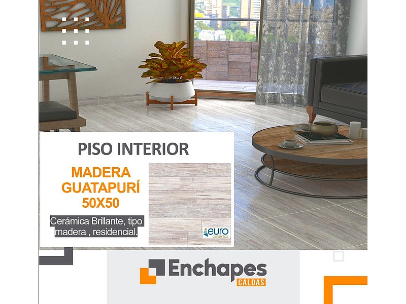 El piso interior tipo madera Guatapuri de 50x50 cm combina la calidez del diseño de madera con la durabilidad y facilidad de mantenimiento del material cerámico. Ideal para crear ambientes acogedores y naturales en cualquier espacio residencial o comercial.