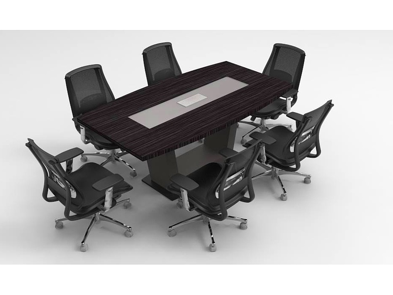 Mesa de juntas para 6 puestos con centro de conectividad.