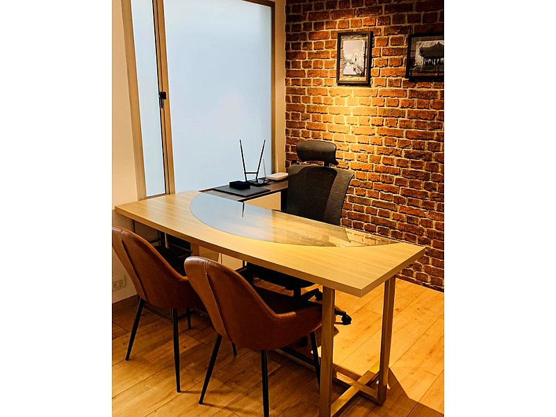 Mobiliario Home Office: elegante, sencillo, productivo. Nuevo escritorio, mueble lateral, puerta corrediza. ¡Un santuario para la concentración!
