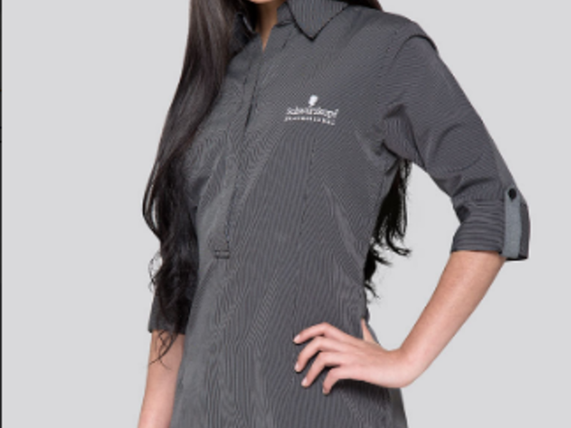 Blusa con abotonadura escondida, mangas con charreteras en contraste de color y pantalón formal