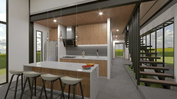 Fachada principal de casa unifamiliar con 6 habitaciones para la familia Gamboa en yopal casanare diseñada bajo el sistema de arquitectura modular en estructura metálica