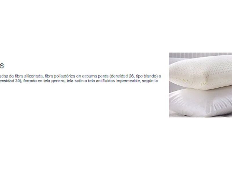 Fabricamos almohadas de fibra siliconada, fibra poliestérica en espuma penta (densidad 26, tipo blando) o espuma naranja (densidad 30), forrado en tela genero, tela satín o tela antifluidos impermeable, según la entidad o el caso