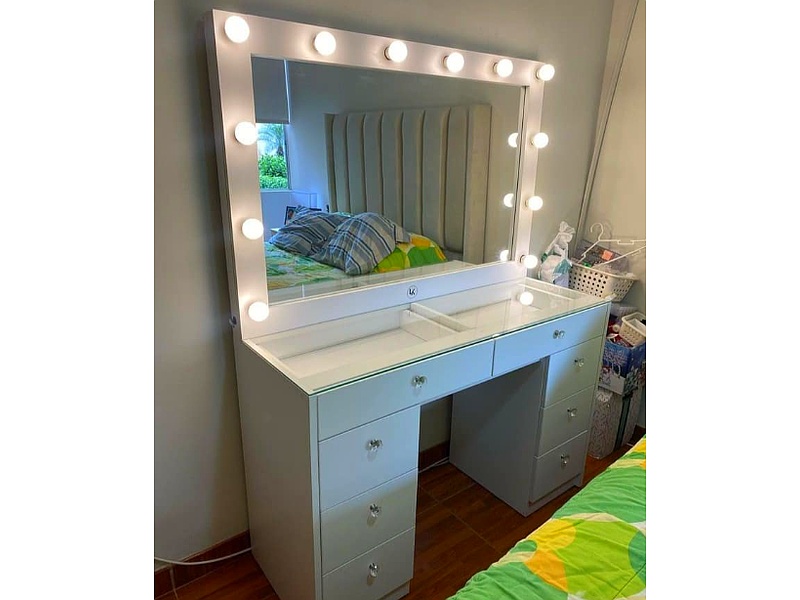 El tocador Katerine, con su elegante marco y luces LED, ofrece una solución perfecta para tus rutinas de belleza. Su iluminación suave y directa ayuda a conseguir un acabado impecable mientras añade sofisticación a tu habitación.