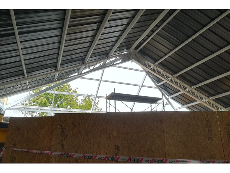La instalación de estructuras metálicas es el proceso de montaje y ensamblaje de elementos prefabricados de acero u otros materiales metálicos para crear diversas construcciones, como edificios, puentes, naves industriales y más. Este proceso implica la preparación del terreno, la colocación de cimientos y la posterior instalación de columnas, vigas, entre otros componentes estructurales. La soldadura, el atornillado y otros métodos de fijación se utilizan para asegurar la estabilidad y resistencia de la estructura. La instalación de estructuras metálicas es común en la construcción moderna debido a su durabilidad, resistencia y versatilidad.