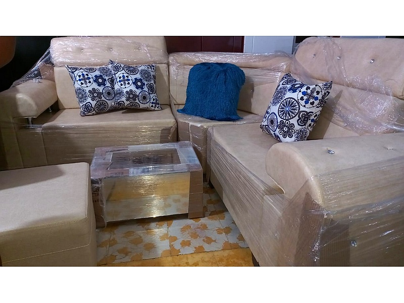 Sofás esquineros color melón, que brindan un toque fresco y vibrante a tu sala.