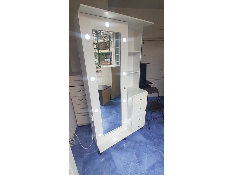 Tocador de pie con cuatro cajones laterales color blanco.